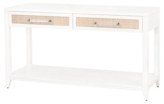 Benjara 2 Drawer Wooden Console Table With Rattan Weave And Acrylic Bar Pulls White Furniture Decor Amazon Com from images-na.ssl-images-amazon.com 2 large drawers for storage a simple yet stylish combination of matte black exteriors and woven rattan, gives this collection a chic contemporary style. Traditional design and timeless charactertraditional design and timeless character are the building. Artemis rattan console table with drawers. Rattan panel on the drawer's exterior adds texture and contrast. Use felt pads under all articles to prevent discoloration. Artisans painstakingly cut and fit the reeds in place to create this artful arrangement in the plant's warm hues. Enjoy free shipping on most stuff, even big stuff. A console table with drawers makes it possible for you to keep documents and any small items out of sight.